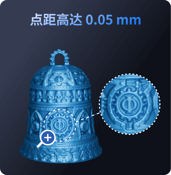采用高功率平行藍光模式,精細呈現(xiàn)每個邊緣、復(fù)雜曲面與微小細節(jié),顯著提升3D模型的清晰度與精確度。